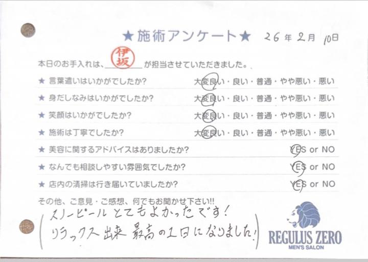久しぶりの伊坂さんの施術で処理や当て方などどの方よりも一番丁寧でとても良かったです。...